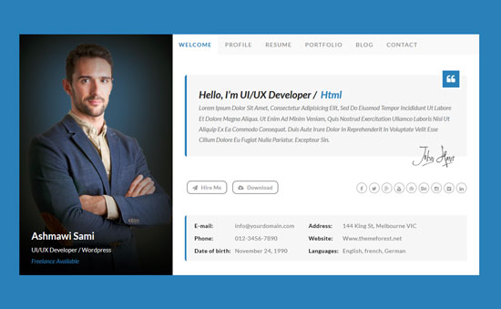 This is a two stage process. This template allows you showcase your skills, work experience as well as education. Download all 572 "personal" web templates unlimited times with a single envato elements subscription. Laura is mobile friendly, clean code, modern layout and ready . Using free wordpress themes and downloaded personal portfolio cv templates free you will create and maintain your portfolio, cv resume website, . Udvas personal portfolio html template udvas is a trendy personal portfolio template includes 11 pages and layouts for different purpose. Instantly download computer science professor resume template, . It has subtle animations as well as timeline view to display your profile. Choice when a recruiter sees your profile they can download it for further reference. Infographic template with icons for cv, personal profile, resume organisation. 1 to 12 of 1006 free personal website templates available on the free css site. Presenting this set of slides with name about me personal profile ppt powerpoint presentation summary slide download. Laura is a clean and responsive free portfolio website template.